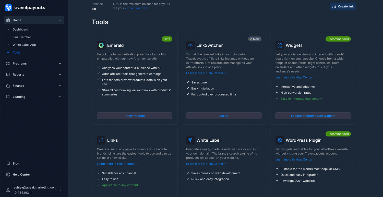 This travel affiliate platform gives you access to 55+ travel brands to promote on your own channels, and earn commission on qualified sales. Some of my faves are Airalo, Booking.com, and Get Your Guide.